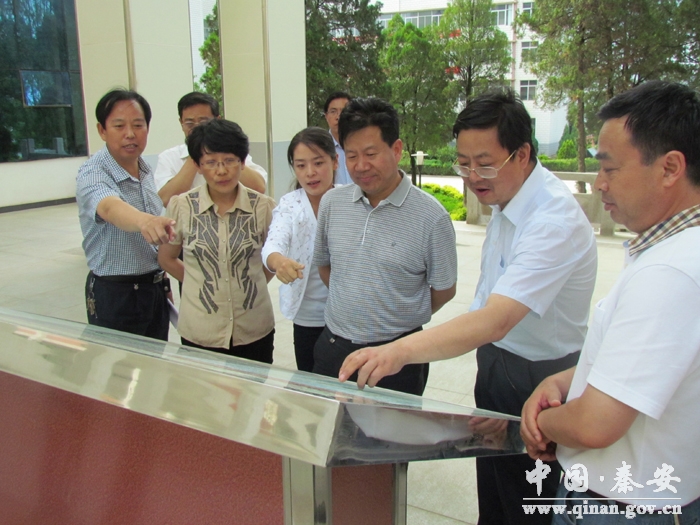 张明泰一行先后深入陇丰生态农业循环示范园、秦安·中国西部小商品城、葫芦河生态公园、大地湾城市综合体建设项目、众邦尚城、县一中,通过实地查看、听取汇报等方式,对秦安县重点项目建设情况进行了详细了解。在督查中,张明泰对重点项目建设工作给予了充分肯定,认为秦安县高度重视项目建设工作,思路清晰,措施到位,取得的效果显著。