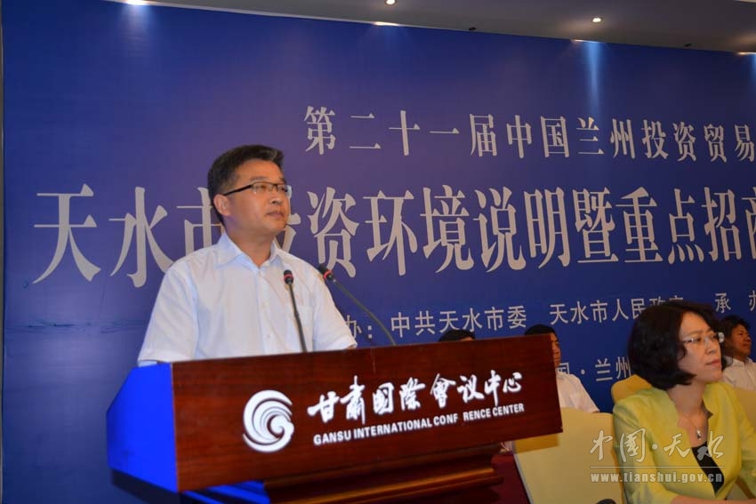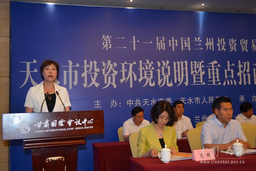 7月6日下午,第二十一届中国兰州投资贸易洽谈会天水市投资环境说明暨重点招商项目签约仪式在甘肃国际会议中心隆重举行。甘肃省人大常委会副主任李慧,副省长、省公安厅党委书记、厅长马世忠,省外事办主任王代喜,省商务厅副厅长马琨,天水市委书记王锐,市人大常委会主任柴金祥,市委副书记、市长杨维俊,市委副书记、市政协主席宋尚有,市委常委、副市长张明泰,市委常委、秘书长蒋晓强,市委常委、副市长宋德雄,市政府副市长温利平,天水经济技术开发区管委会主任马小龙,市政府秘书长逯克宗等出席会议。会议由宋德雄主持,杨维俊致辞,温利平作主题推介。