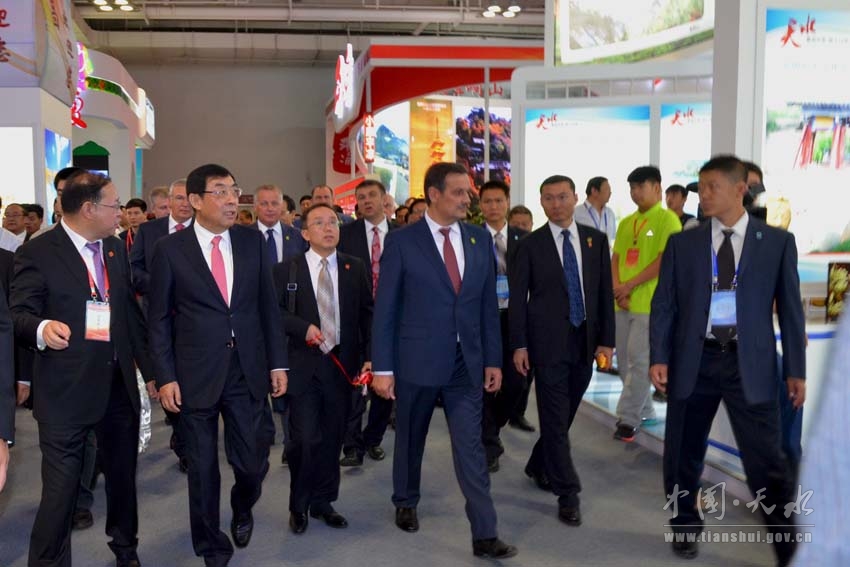 (全国政协副主席马培华等与会嘉宾参观天水展馆)